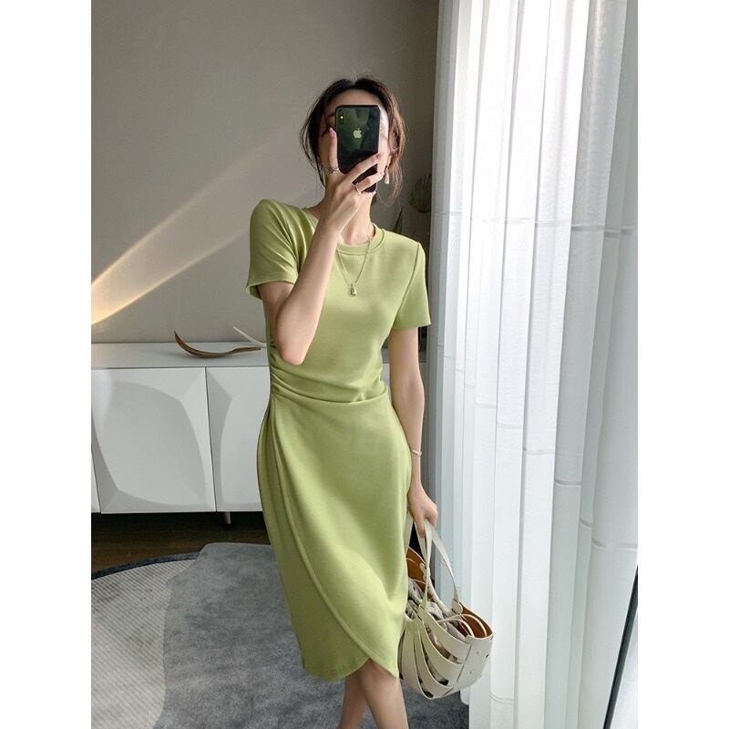 フランスのレトロシックなデザインのスカート気質の女神ファンYujie軽いおなじみのスタイルウエストニットドレス女性の夏 サマー 夏物 yingd10840623842