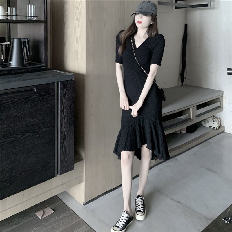 スカート2020新夏夏ウエスト薄気質女神ファン優しい風白フィッシュテールフレンチドレス ホワイト サマー 夏物 yingd25329647593