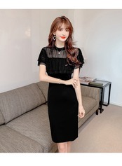 2021年夏の新しい冷風婦人服ハイエンドライトラグジュアリーレディースセクシーパッケージヒップレースステッチドレス女性 サマー 夏物 yingd52859582988