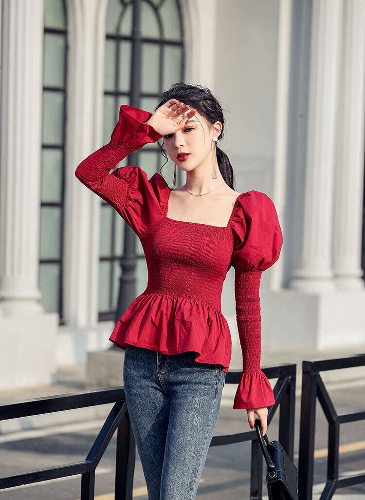 2021年春新作レディースフレンチレトロ長袖シャツレディースデザインセンスニッチパフスリーブボトミングシャツトップス ロング スプリング 春物 yingd48678509994