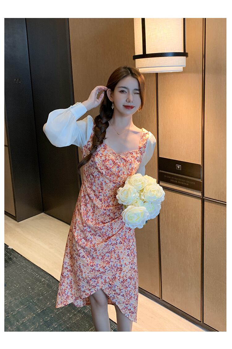 2021年春の新しいフレンチスタイルの穏やかな風は、塩辛くて甘い気質の女性の正方形の襟のシフォン花柄のドレスの女性にすることができます 大人ガーリー スウィート キュート カジュアル スプリング 春物 スクウェア yingd93801345475