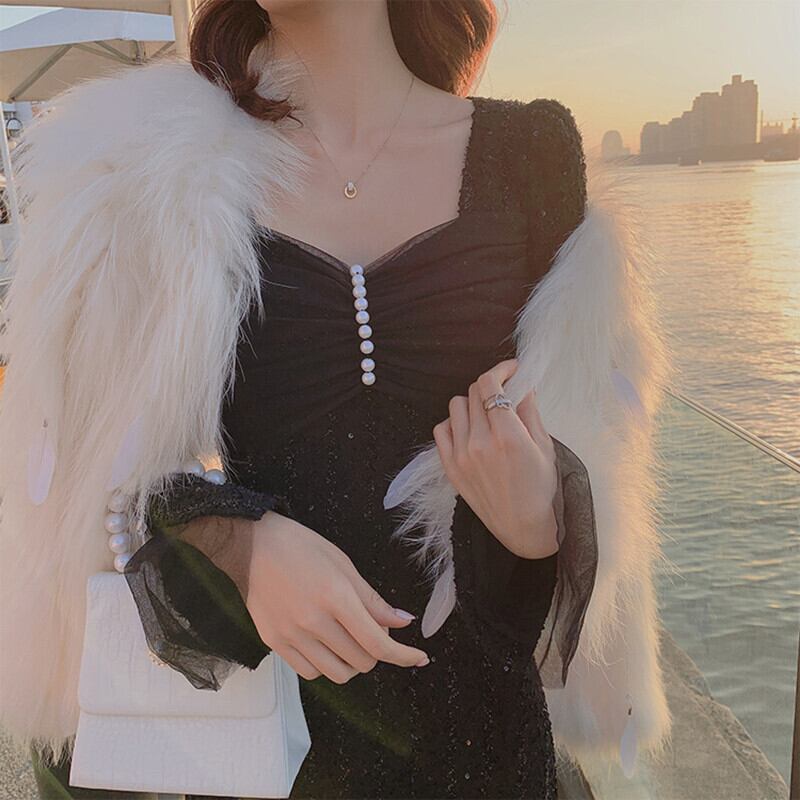 フランスのレトロなロングドレスは薄くて気質の軽い高級レディースセクシーなスリムライトおなじみのスタイルのドレス女性の秋と冬 オータム 秋物 ウィンター 冬物 yingd20189666162