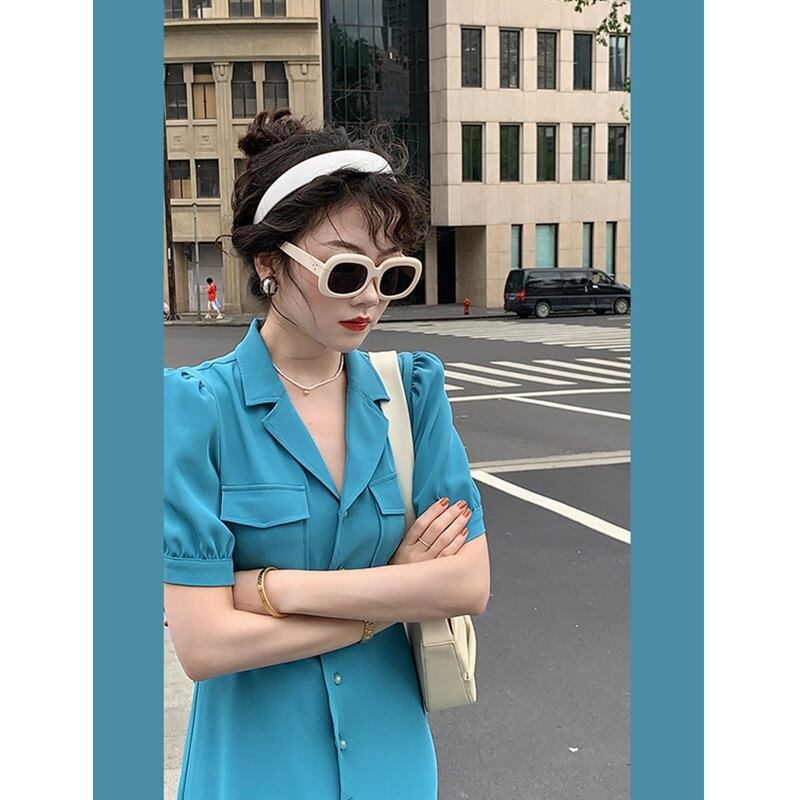 フランスのレトロなスーツのスカート夏のデザインハイエンドロイヤルシスターライトおなじみのスタイルVネックパフスリーブスーツドレス女性 サマー 夏物 yingd19359107849
