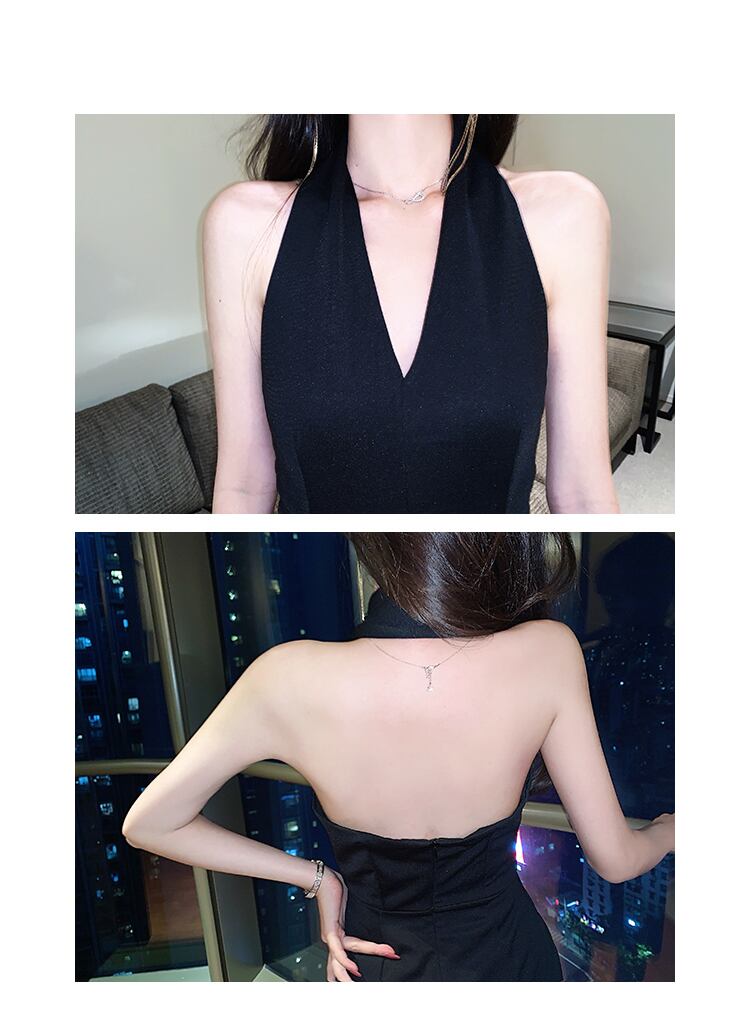 フランスのレトロなヘップバーンスタイルのロングドレスYujieライトおなじみのスタイルのデザインニッチセクシーなVネックホルタードレス女性の夏 サマー 夏物 yingd83988632835