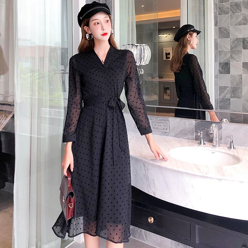 2020年秋新しい女性のフランスのレトロなヘップバーンスタイルのリトルブラックドレス オータム 秋物 yingd21525526624