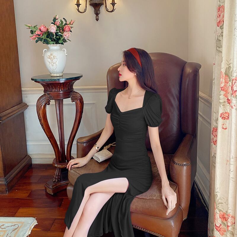 スカート2020年夏新しいフランスのレトロな気質ウエストスリミングワンショルダースプリットセクシーなドレスの女性 サマー 夏物 yingd45154808211