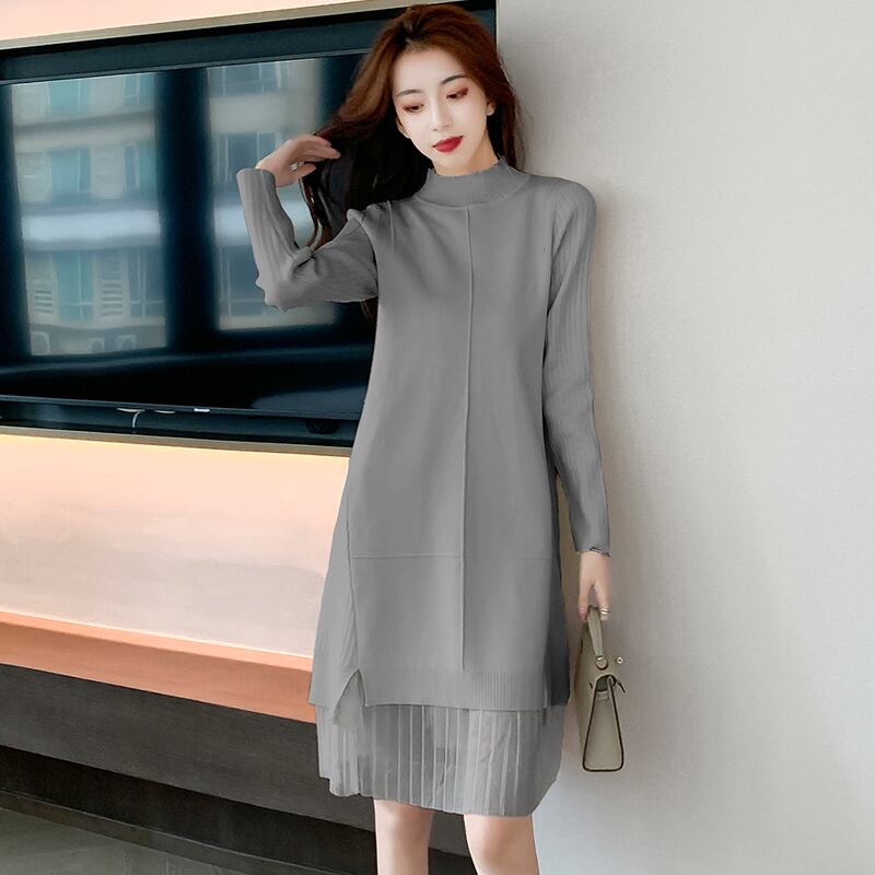 秋冬バージョンルーズで怠惰なスタイルのロング膝丈セータードレスレディースライトラグジュアリー気質レディース長袖ニットワンピース オータム 秋物 ウィンター 冬物 yingd54479688140
