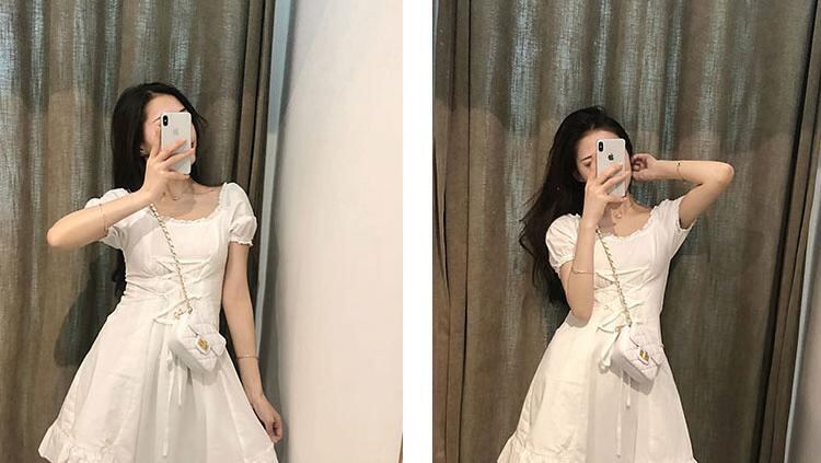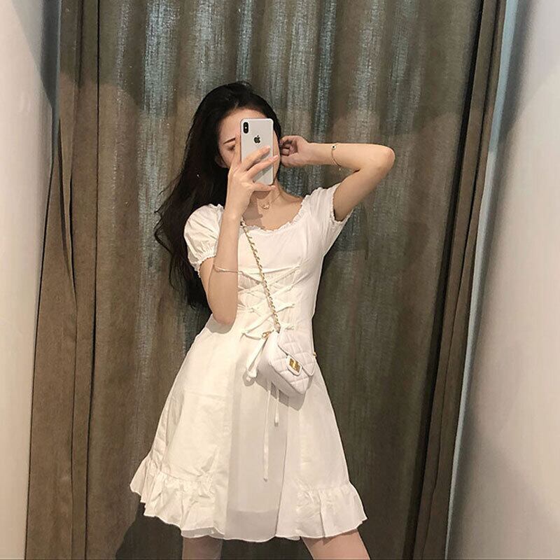 小さな四角い首のパフスリーブドレス女性2020新しい夏フランスのニッチ甘い初恋の妖精のスカート 大人ガーリー スウィート キュート カジュアル サマー 夏物 スクウェア yingd25223368037