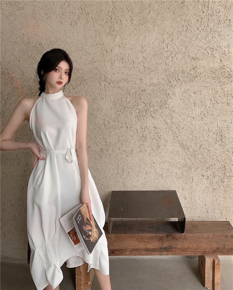 フランスのレトロなデザインのハイエンド気質の女神ファンYujie軽いおなじみのスタイルセクシーなノースリーブホルタードレス女性の夏 サマー 夏物 yingd31108277627