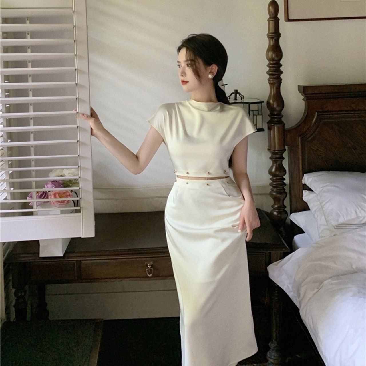 フレンチレトロヘップバーンスタイルロングドレスサマーデザインハイエンドサテンセクシー注意マシン露出ウエストバッグヒップドレス女性 夏物 yingd90145545251