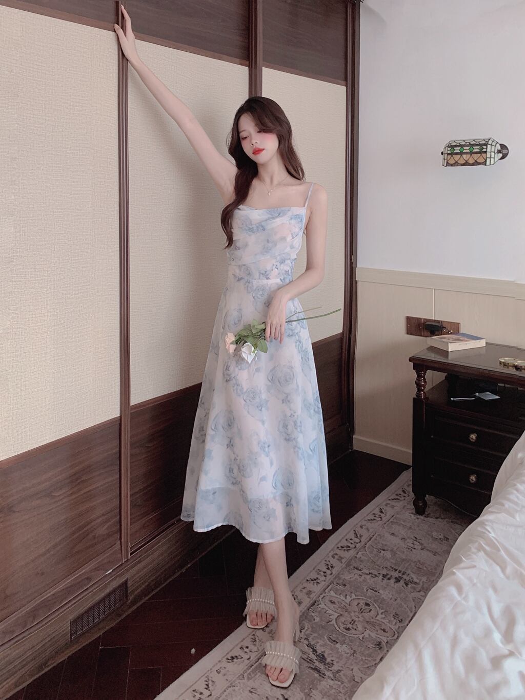 フランスの純粋な欲望優しいお茶の休憩妖精のスカートスーパー妖精エストセクシーな背中の開いたシフォン花柄サスペンダードレス ピュア yingd95280881907