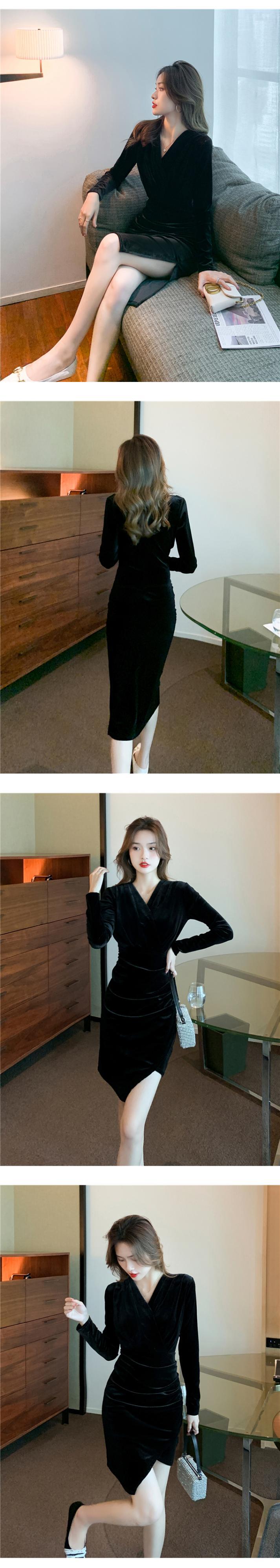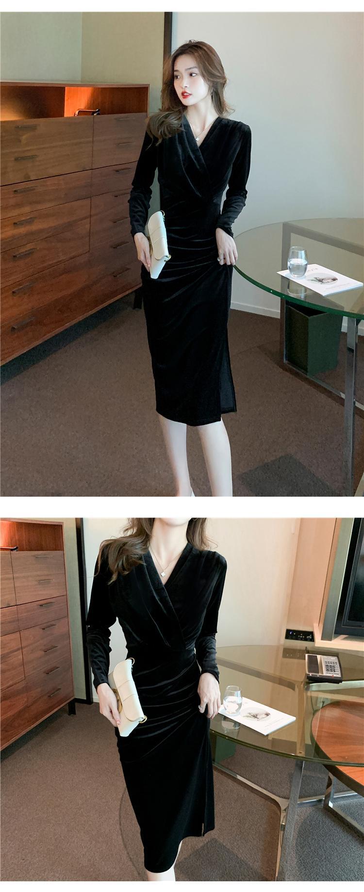 フランスのレトロなヘップバーンスタイルのリトルブラックドレス見事なスカートハイエンドスリムセクシースリットベルベットドレス冬 ウィンター 冬物 スカート yingd96261863809
