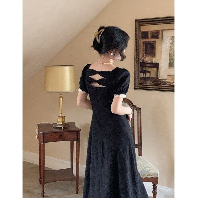 フランスのニッチベルフラワー初恋スカート優しいスタイル気質軽い贅沢な女性ヘップバーンスタイル白い四角いネックドレス女性の夏 ホワイト サマー 夏物 フラワーデザイン スクウェア yingd74317188478
