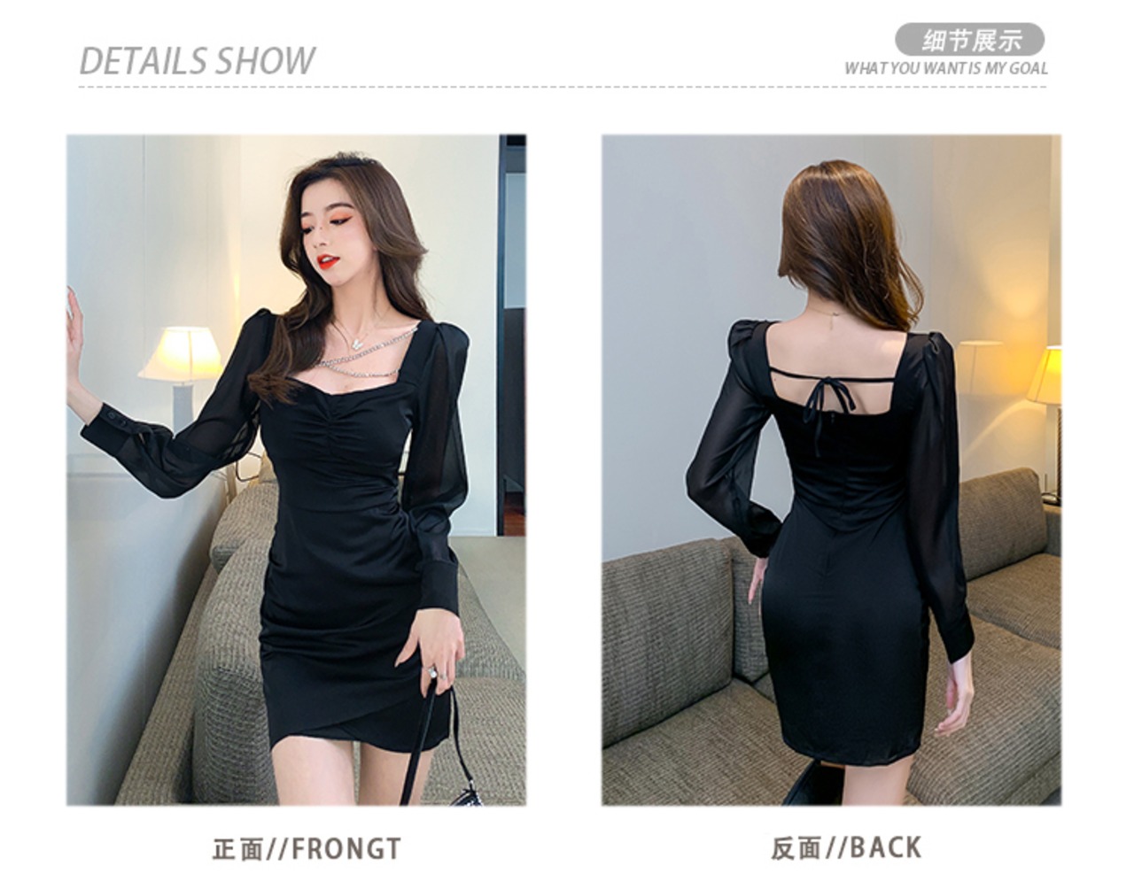 2022年春の新しい女性の見事なハイエンドセンスロイヤルシスターライトおなじみのスタイルフレンチレトロヘップバーンスタイルのスクエアカラードレス スプリング 春物 スクウェア yingd83935999015