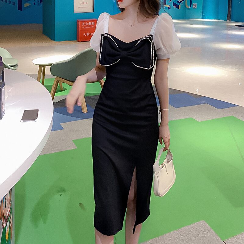 フランスのレトロなヘップバーンスタイルのリトルブラックドレスのデザインセンスボウスカートXiaYujieライトクックドスタイルのスプリットドレス女性 リボン yingd43373465459