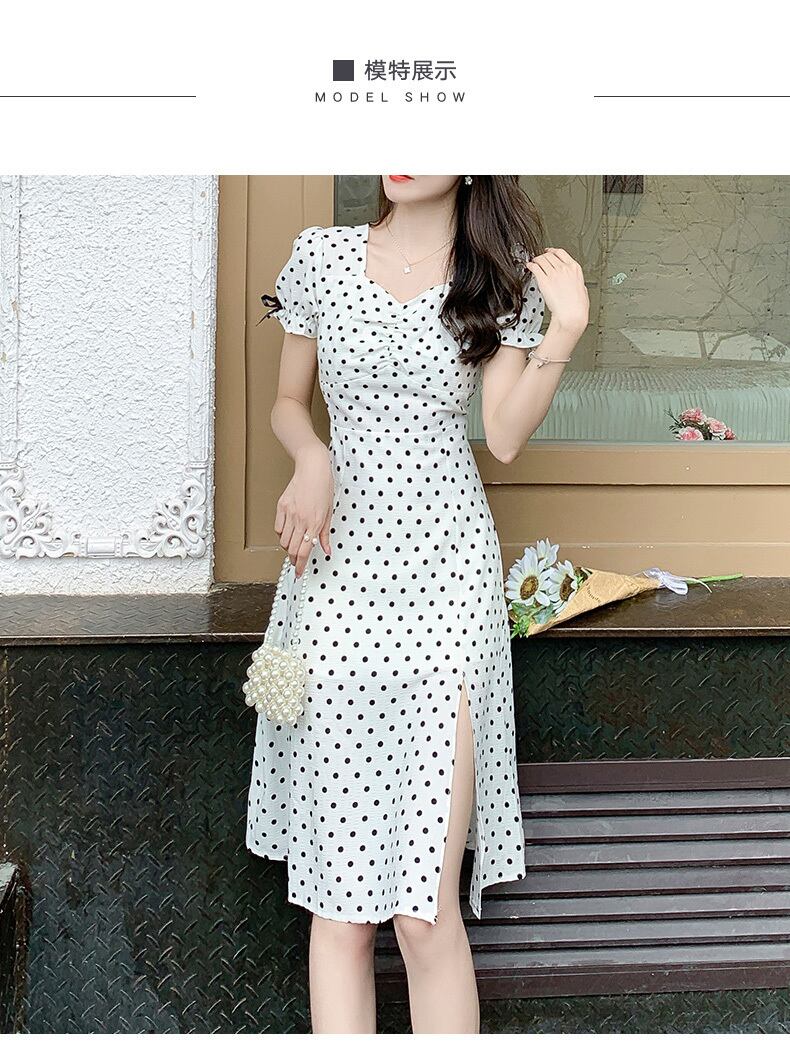 フランスのレトロな優しいスタイルのベルフラワーティーブレイクスカートスクエアネックパフスリーブ甘い初恋シフォン水玉ドレス女性の夏 大人ガーリー スウィート キュート カジュアル サマー 夏物 フラワーデザイン スクウェア yingd55139123417
