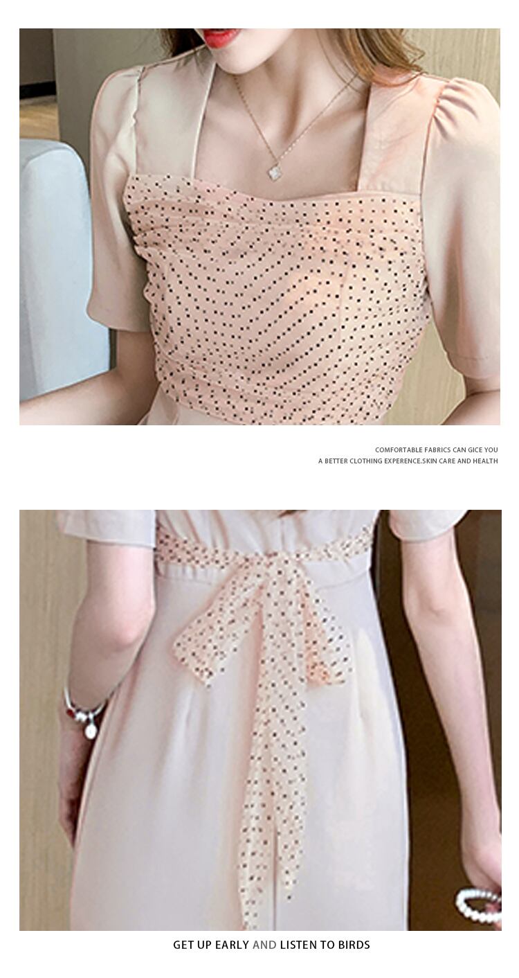 フレンチレトロヘップバーンスタイルリトルブラックドレス気質の女神ファンスクエアカラーパフスリーブメッシュ水玉ドレス女性の夏 サマー 夏物 スクウェア yingd82371349347