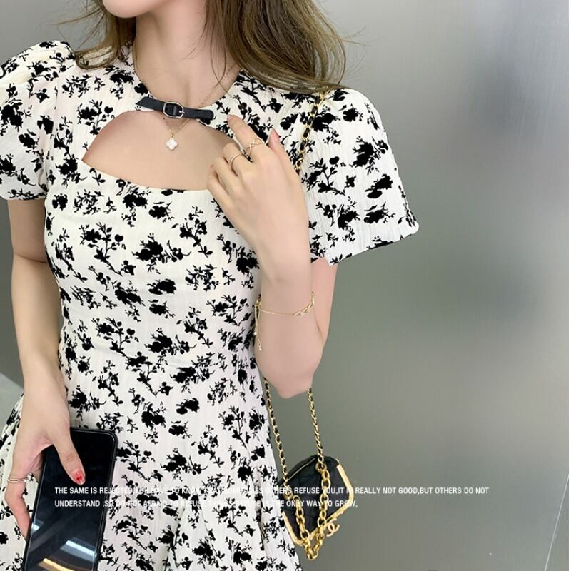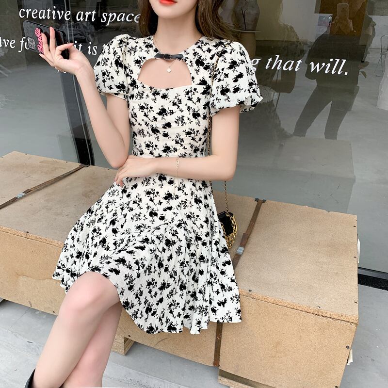 フランスの優しいスタイルのティーブレイクベルフラワースカートデザインハイエンドスカート気質女神ファン花柄ドレス女性の夏 サマー 夏物 フラワーデザイン yingd13710753018
