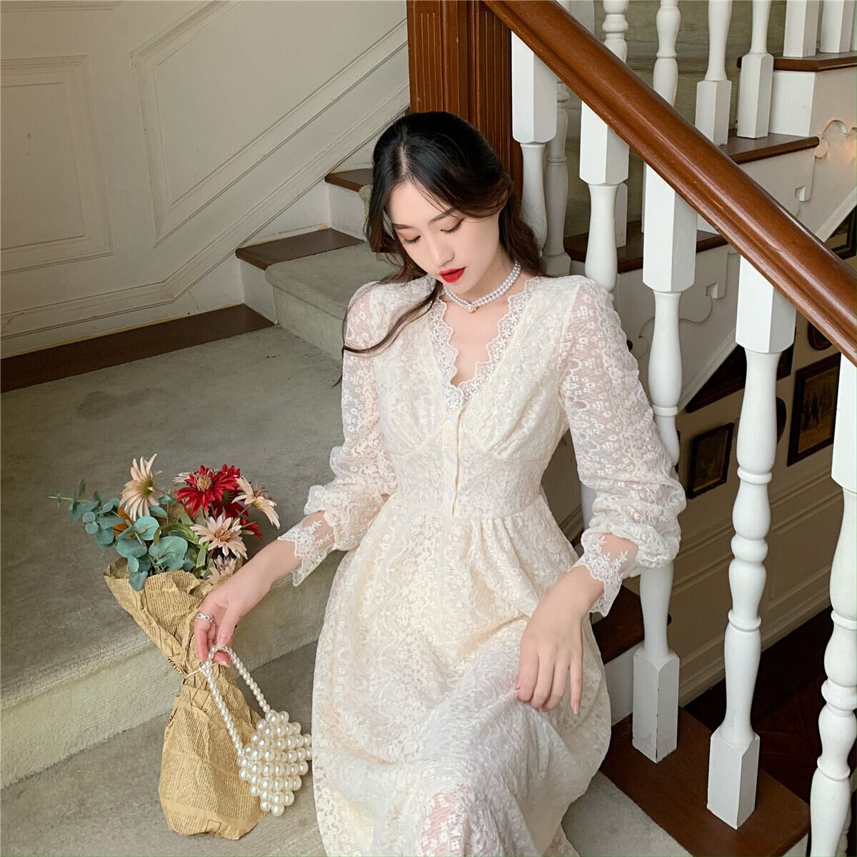 2020年秋新作レディースフレンチレトロウエストウエスト薄手の気質ライトラグジュアリーレディースハイエンドレースドレスレディース オータム 秋物 yingd20081422024