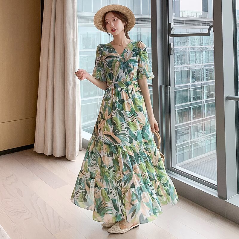 2020年夏ニュースタイルフローラルシフォンドレスレディースウエストスリム気質ロングスカートフェアリースーパーフェアリーエスト サマー 夏物 花柄 yingd14937824626
