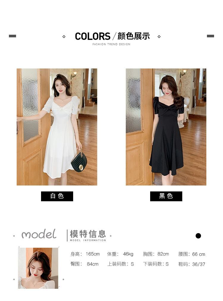 フランスのニッチな甘い初恋の妖精のスカート穏やかな風の気質の女神ファンスクエアカラーパフスリーブドレス女性の夏 大人ガーリー スウィート キュート カジュアル サマー 夏物 スクウェア yingd29069150084