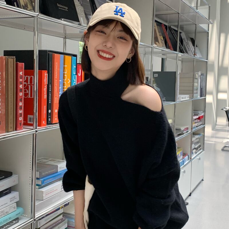 セーターの女性の秋と冬のアウターウェアルーズで怠惰なスタイルのデザインセンスホルターネックオフショルダー長袖ボトミングニットセータートップ女性 ロング オータム 秋物 ウィンター 冬物 yingd61243977087