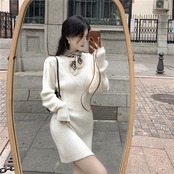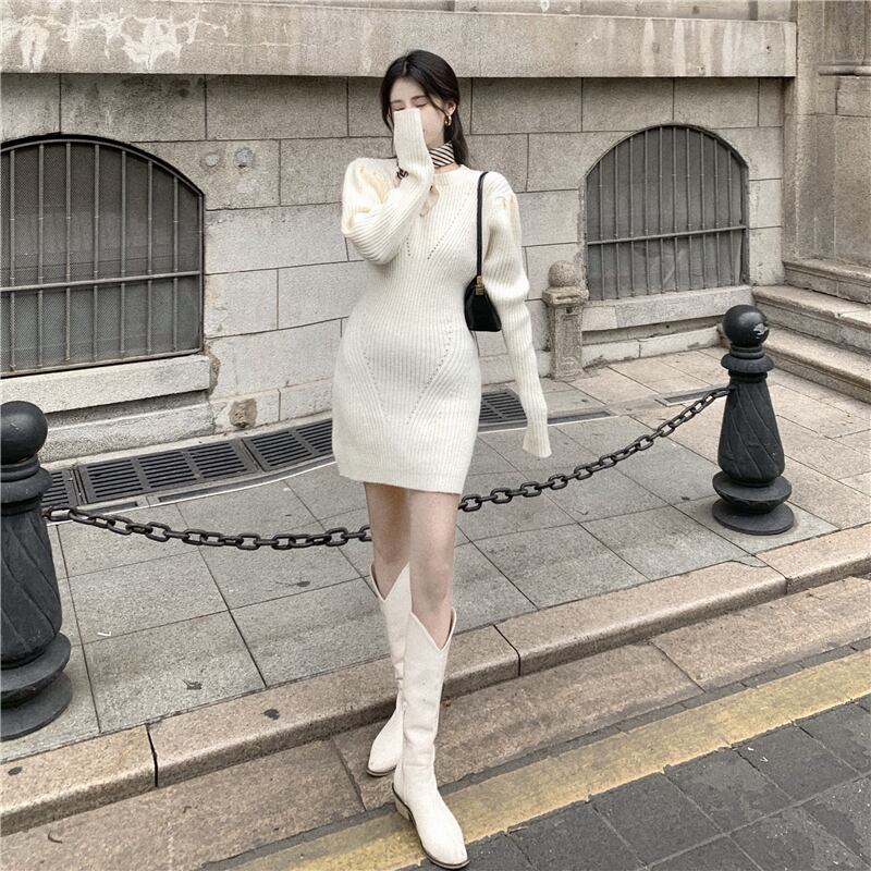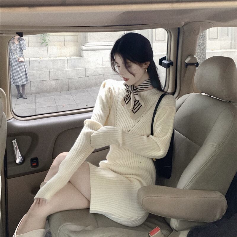 フランスのレトロなウエストと薄い気質の女神は、コートとニットドレスの女性の秋と冬のタイトなバッグヒップをファンします オータム 秋物 ウィンター 冬物 yingd77986303657