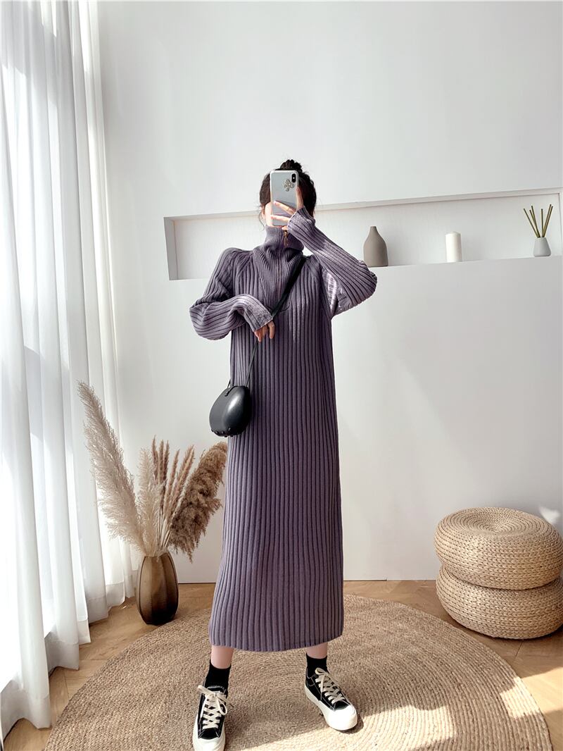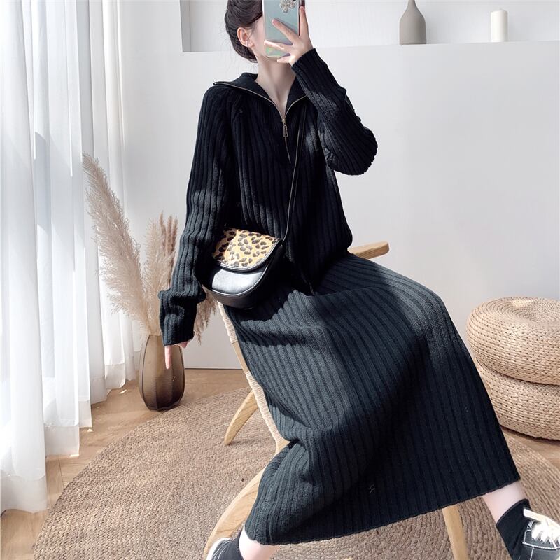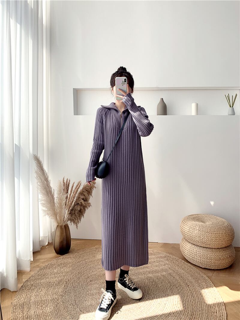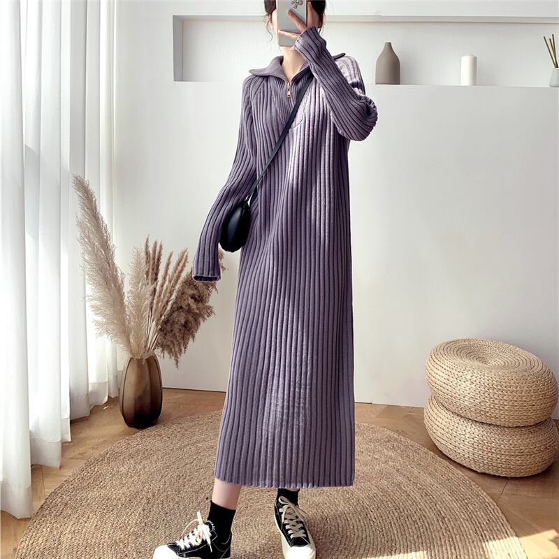 膝の上のフレンチレトロロングセータードレスデザインジッパー怠惰な優しい風ニットドレス女性の秋と冬 オータム 秋物 ウィンター 冬物 yingd70470213958