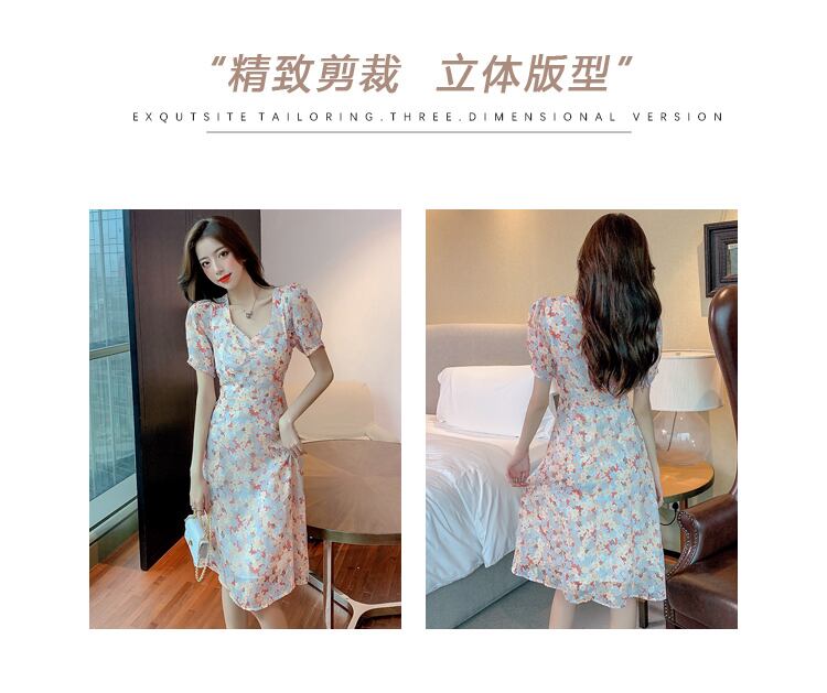 フランスのレトロなベルフラワーティーブレイクドレス女性の2021年夏新しいウエストレススリム気質穏やかな風花柄ドレス女性 サマー 夏物 フラワーデザイン yingd72054615194