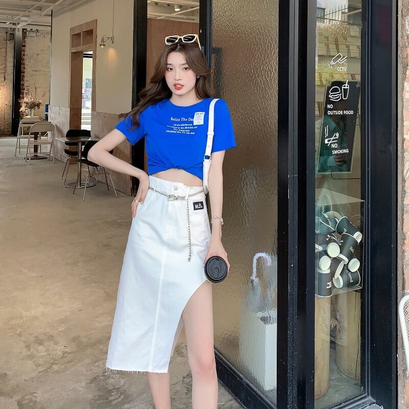 フレンチレトロネットレッドスーツスカート女性夏気質女神ファン半袖Tシャツスプリットデニムスカートツーピース サマー 夏物 yingd4523244906