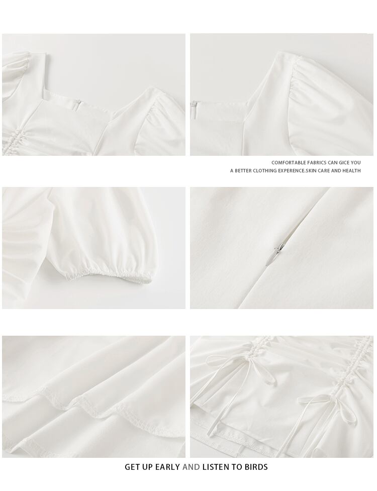 フレンチレトロスクエアネックパフスリーブ気質スモールスカートウエストスリムプリーツ巾着ホワイトドレスレディースサマードレス 夏物 スクウェア yingd52542972904