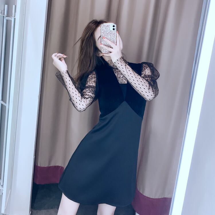 フランスのレトロなヘップバーンスタイルのリトルブラックドレス2020年秋新しい女性のウエストと薄い気質の女神のドレス オータム 秋物 yingd68811731566