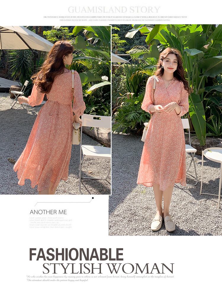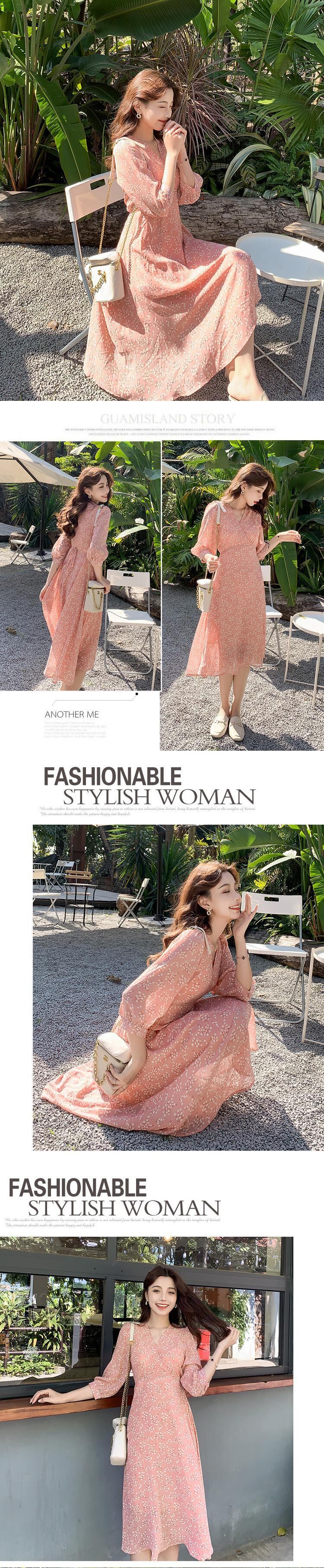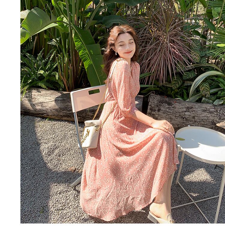 サマードレス2021新しい女性のフランスの穏やかな風は塩辛くて甘い気質になることができますVネックシフォンピンクフローラルドレスの女性 大人ガーリー スウィート キュート カジュアル 夏物 花柄 yingd72990702837