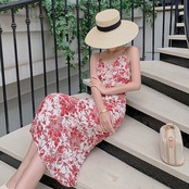 フランスのレトロなヘップバーンスタイルの花柄ドレス冷風ハイエンドセンスロイヤルシスターライトおなじみのスタイルプリントサスペンダードレス夏 サマー 夏物 yingd77606802702