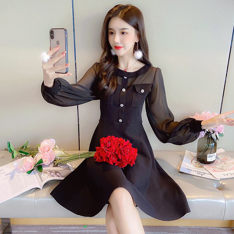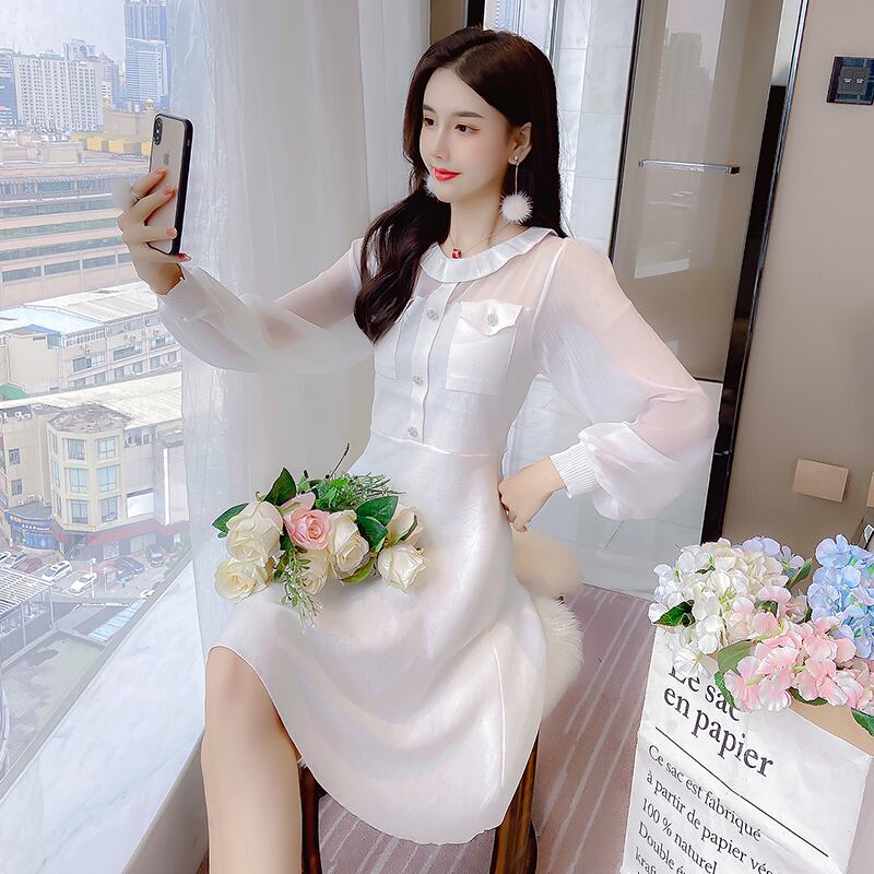 2020年秋の新作レディーススカートスーパーフェアリーエストラインウエストと薄手の気質女神ファンホワイトニットワンピース オータム 秋物 yingd28447643216