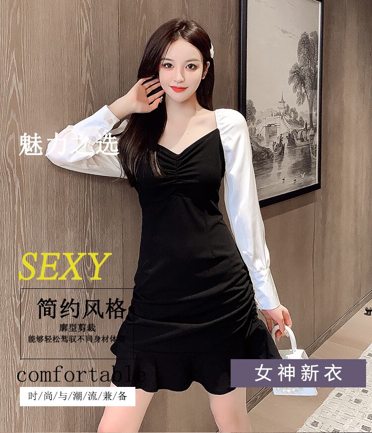 フランスのレトロなウエストと細い気質の女神ファン青州スタイルのセクシーな黒のドレス女性の2020年秋新しい ブラック オータム 秋物 yingd58328078573