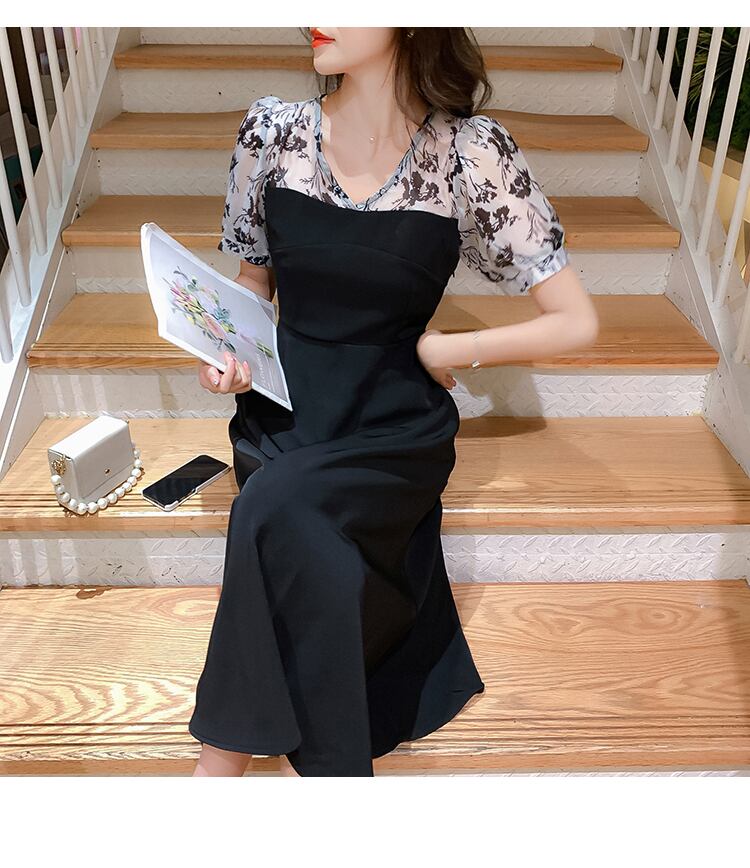 フランスのレトロなヘップバーンスタイルのロングドレス夏の冷風ハイエンド気質の女神ファンパフスリーブVネックドレス女性 サマー 夏物 yingd65556493769