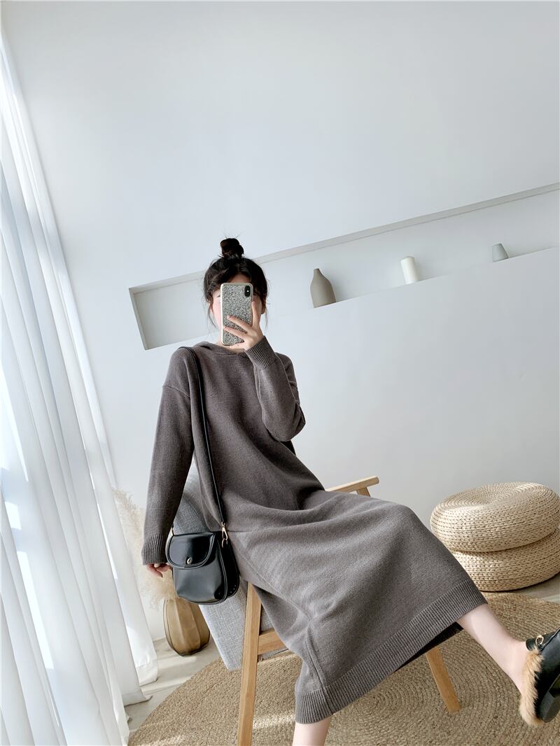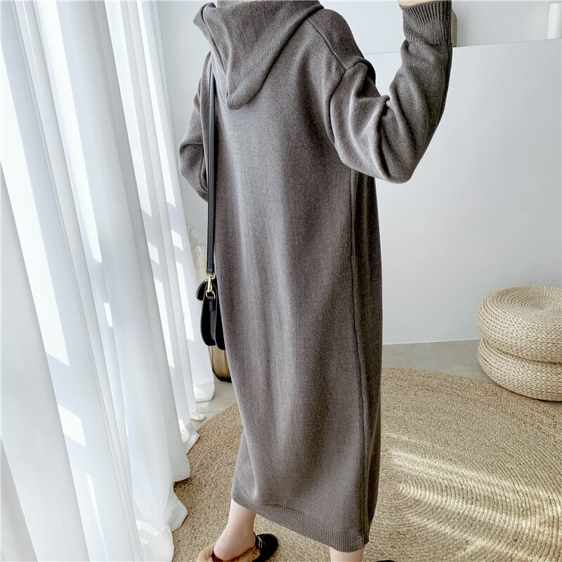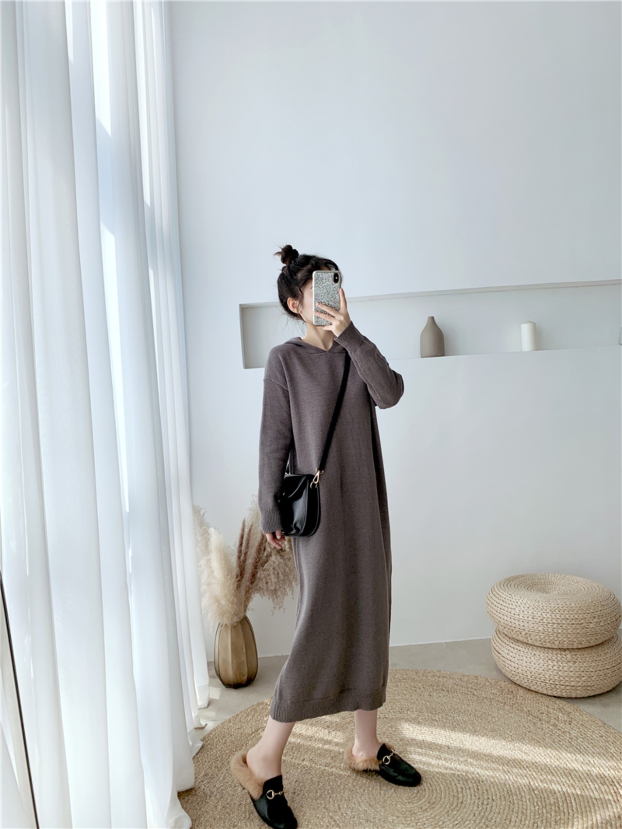 コート、ロングセーター、スカート、女性の膝丈バージョン、ルーズで怠惰なスタイル、フード付きニットインナードレス、女性の秋と冬 オータム 秋物 ウィンター 冬物 yingd81259720743