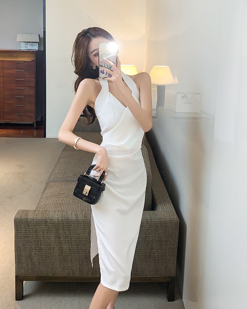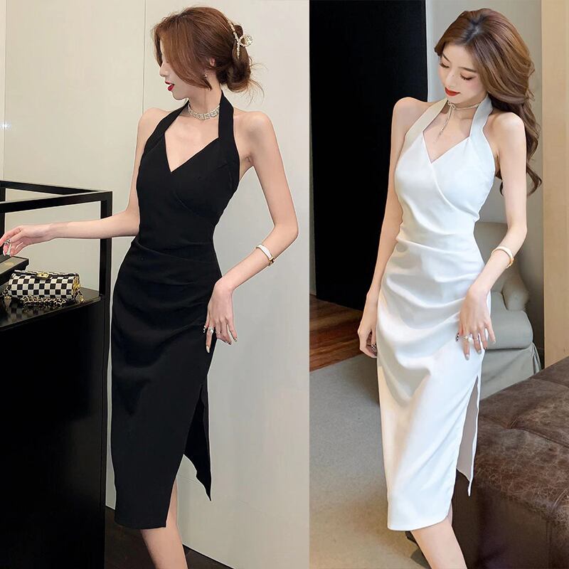 フランスの女性のハイエンドシックなユニークなスカートウエストスリム気質セクシーなハンギングネックVネックドレス女性の夏 サマー 夏物 yingd38272681508