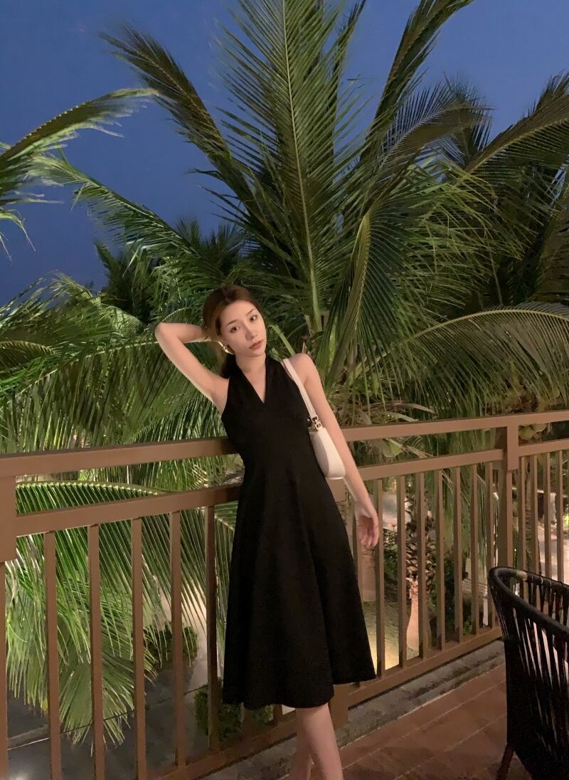 フレンチレトロヘップバーンスタイルのウエストと薄い気質のリトルブラックドレスロイヤルシスターライトおなじみのスタイルノースリーブホルタードレス女性の夏 サマー 夏物 yingd31660868532
