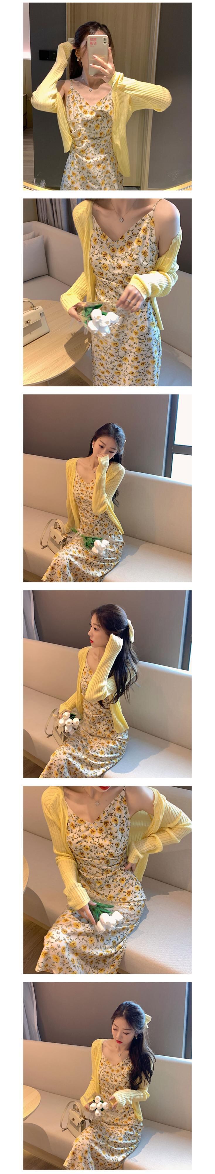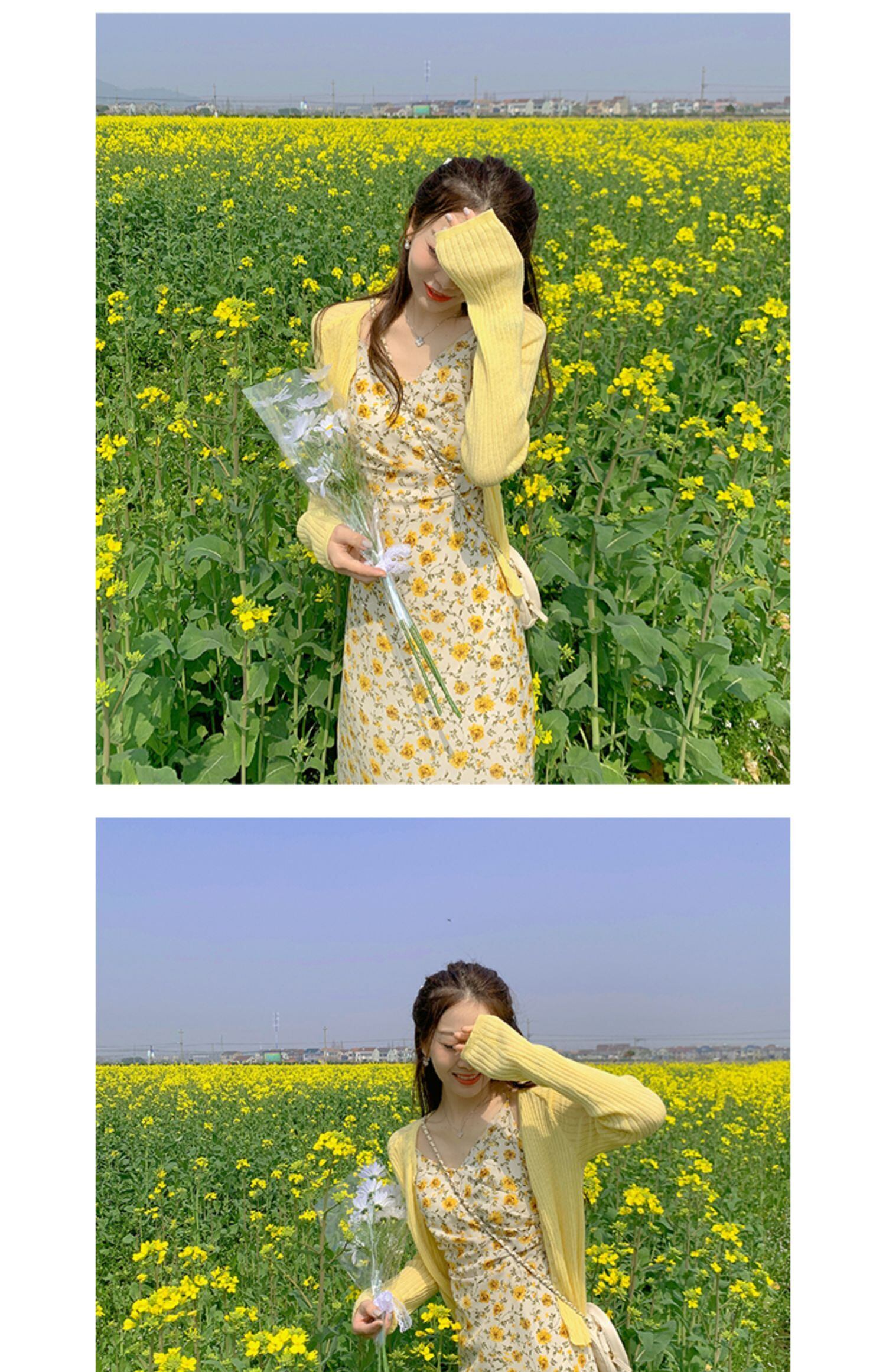 フランスのレトロなベルフラワー初恋スカートセン部門穏やかな風缶塩缶甘いセクシーなVネックフローラルスリングドレス 大人ガーリー スウィート キュート カジュアル 花柄 フラワーデザイン yingd56025339277