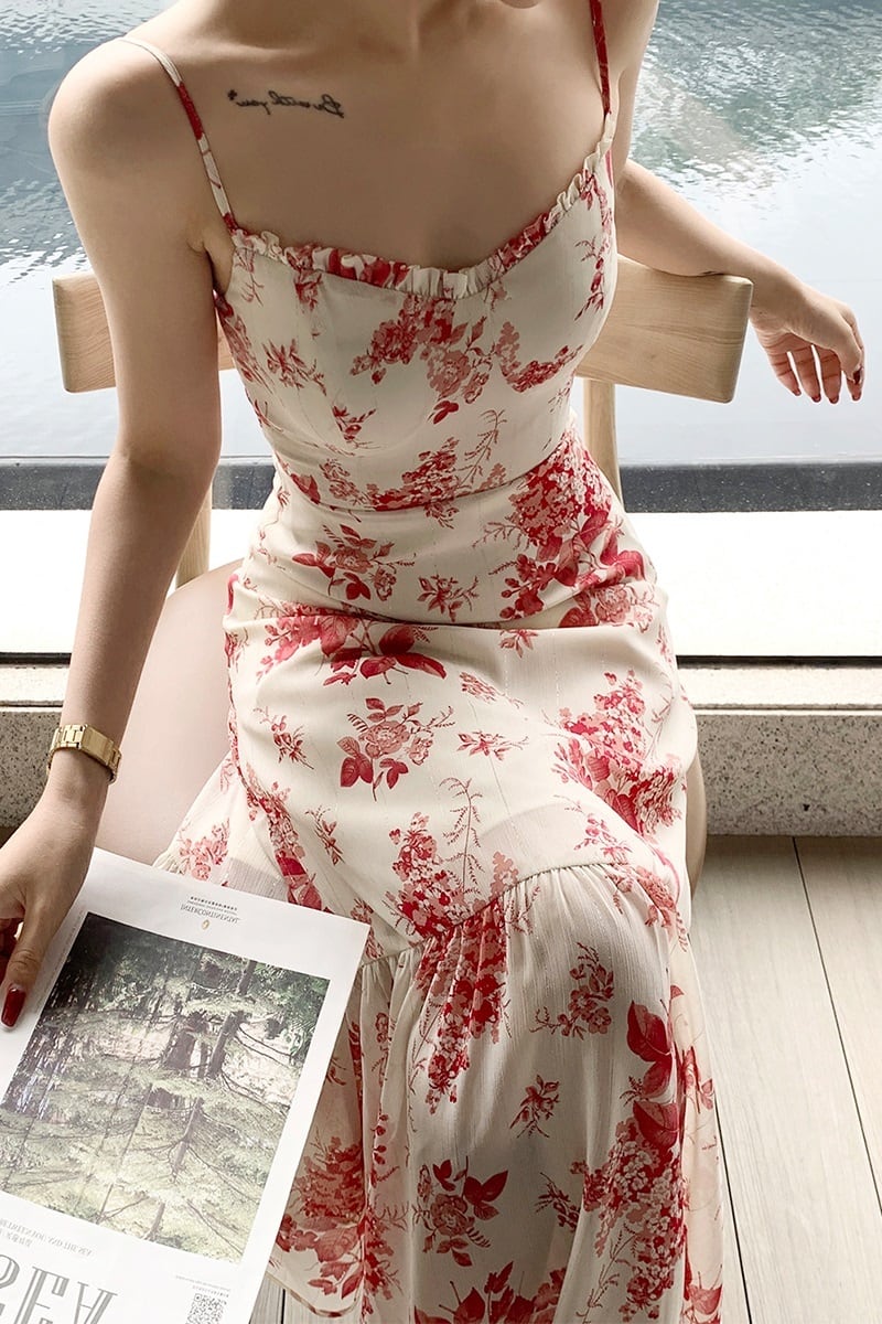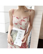 フランスのレトロなベルフラワーティーブレイクスリングドレスウエストスリム気質軽い熟したスタイルフローラルスリングドレス女性の夏 サマー 夏物 花柄 フラワーデザイン yingd3655910982