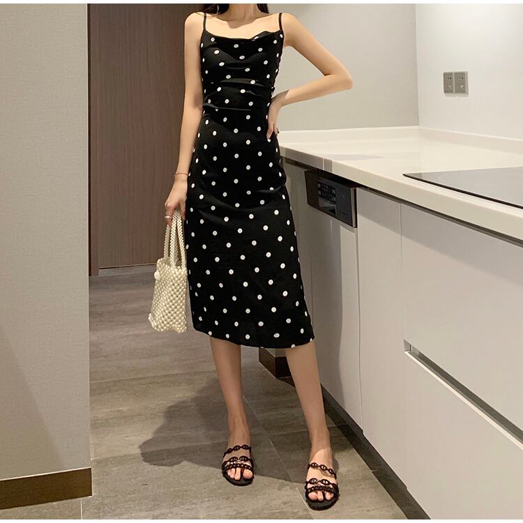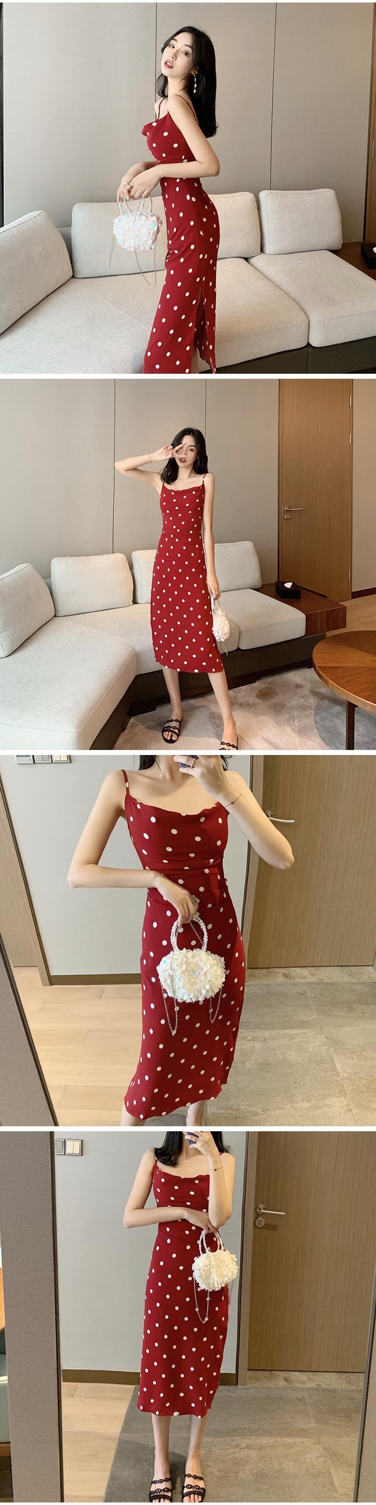 フレンチレトロ水玉サスペンダースカート女性夏ウエスト痩身気質デザインニッチスプリットサスペンダードレス女性 サマー 夏物 yingd20148009417