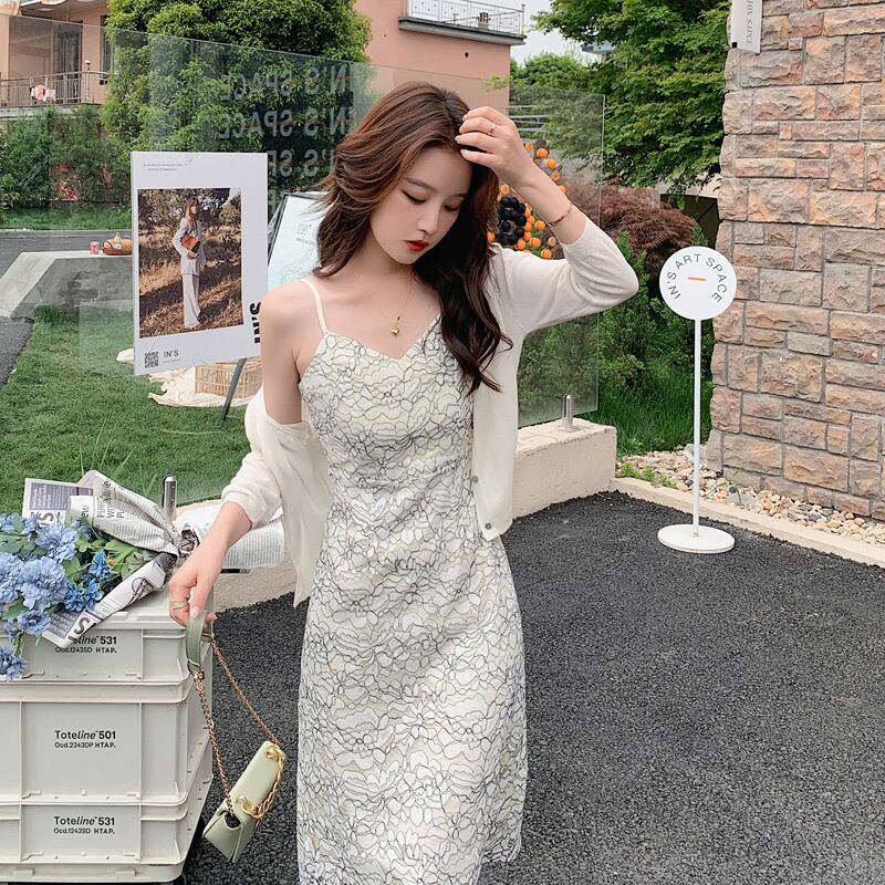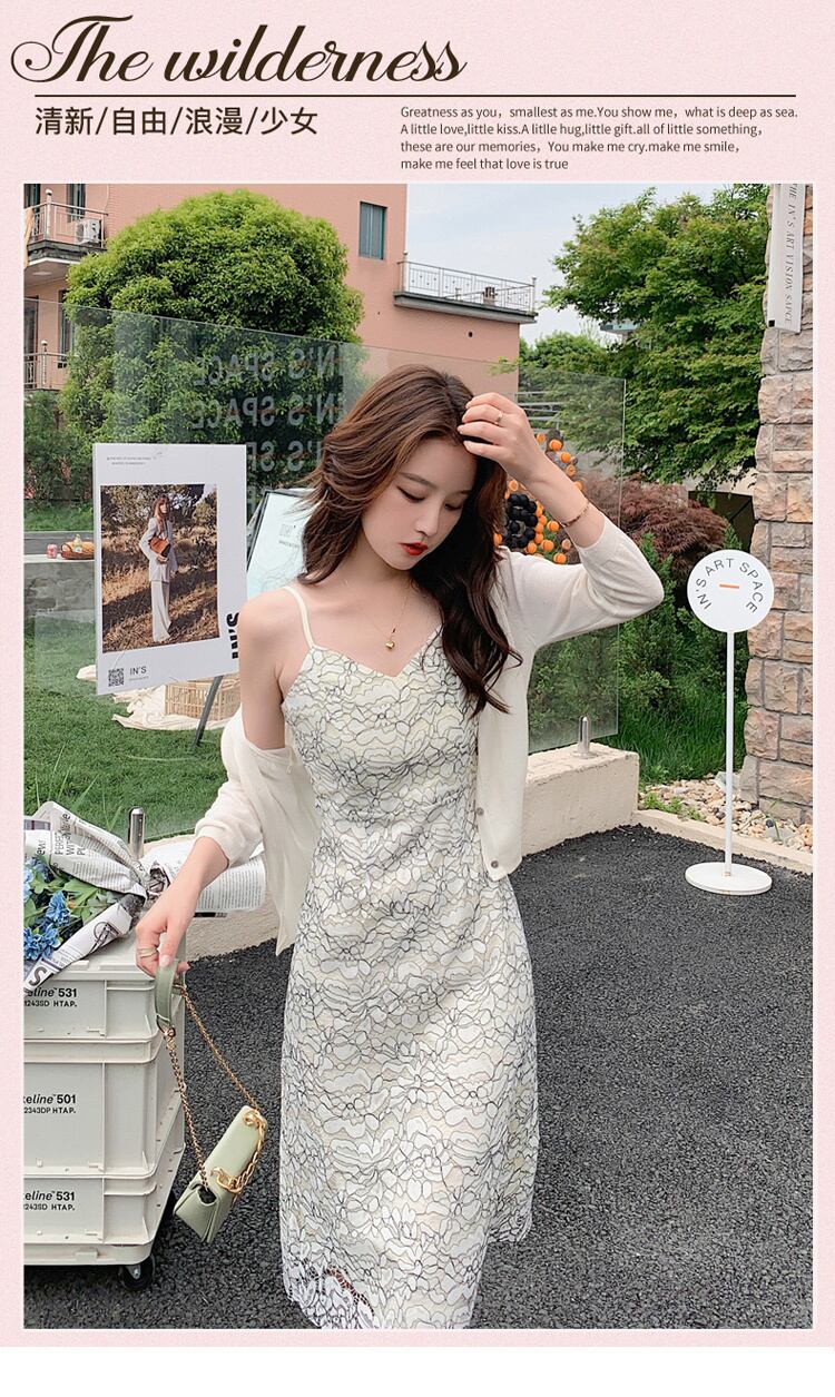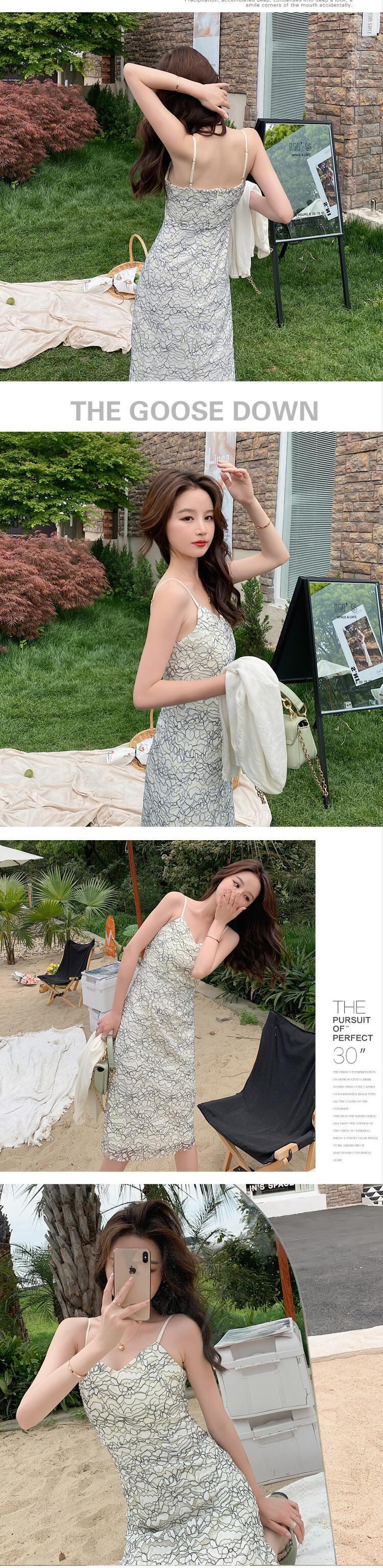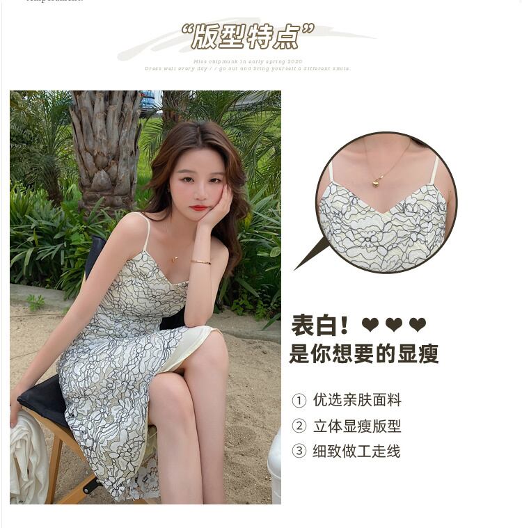 サスペンダースカート女性ウエストスリム気質セクシーVネックレースサスペンダードレス女性夏を着て外のニッチを感知 サマー 夏物 yingd34013121458