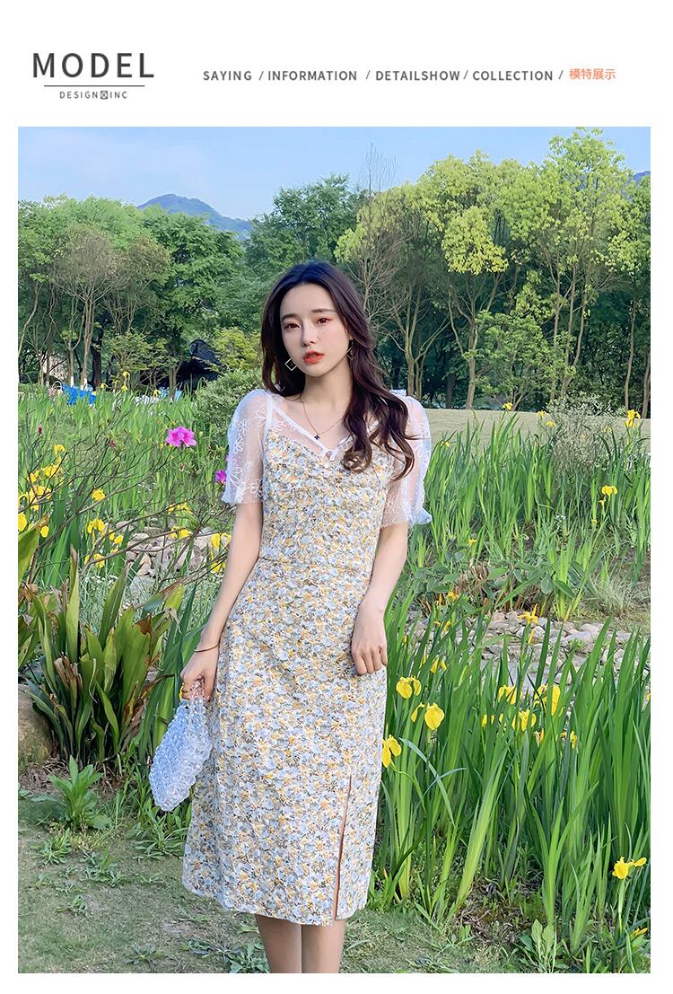 フレンチスウィートファーストラブスカートフェアリースーパーフェアリーエスト優しい風メッシュパフスリーブスクエアカラードレス女性夏 大人ガーリー キュート カジュアル サマー 夏物 スクウェア yingd71196257959