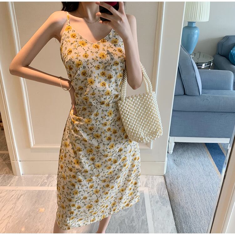 フランスのレトロなベルフラワー初恋スカート森ウエスト細い気質優しい風フローラルサスペンダードレス女性の夏 サマー 夏物 花柄 フラワーデザイン yingd18139997457
