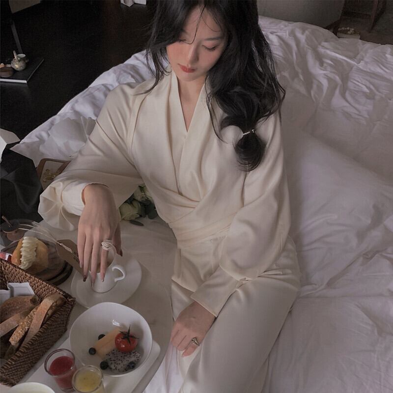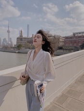 フレンチレトロホワイトシャツレディースデザインセンスニッチ気質ライトラグジュアリーレディースハイエンドVネックシックトップレディースシャツ yingd91185460756