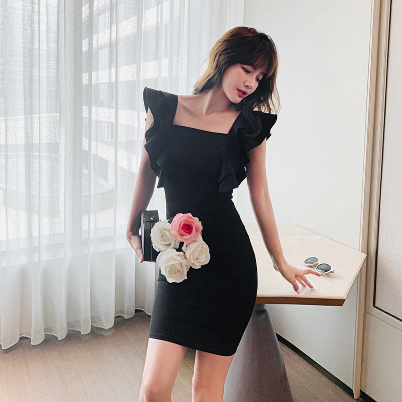 スカートの女性の2021年夏の新しいフランスのレトロなヘップバーンスタイルのウエストとスリムな気質の黒のセクシーなヒップドレス ブラック サマー 夏物 yingd26383238405