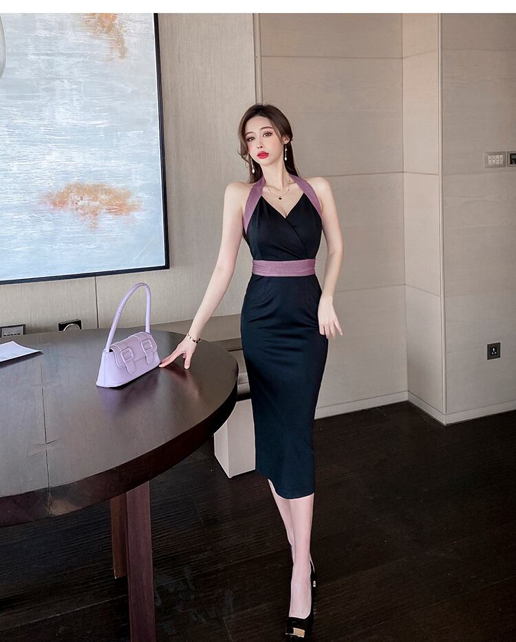 フレンチレトロロングドレスウエストスリム気質ライトラグジュアリーレディースデザインセクシーVネックホルタードレス女性夏 サマー 夏物 yingd31867698971