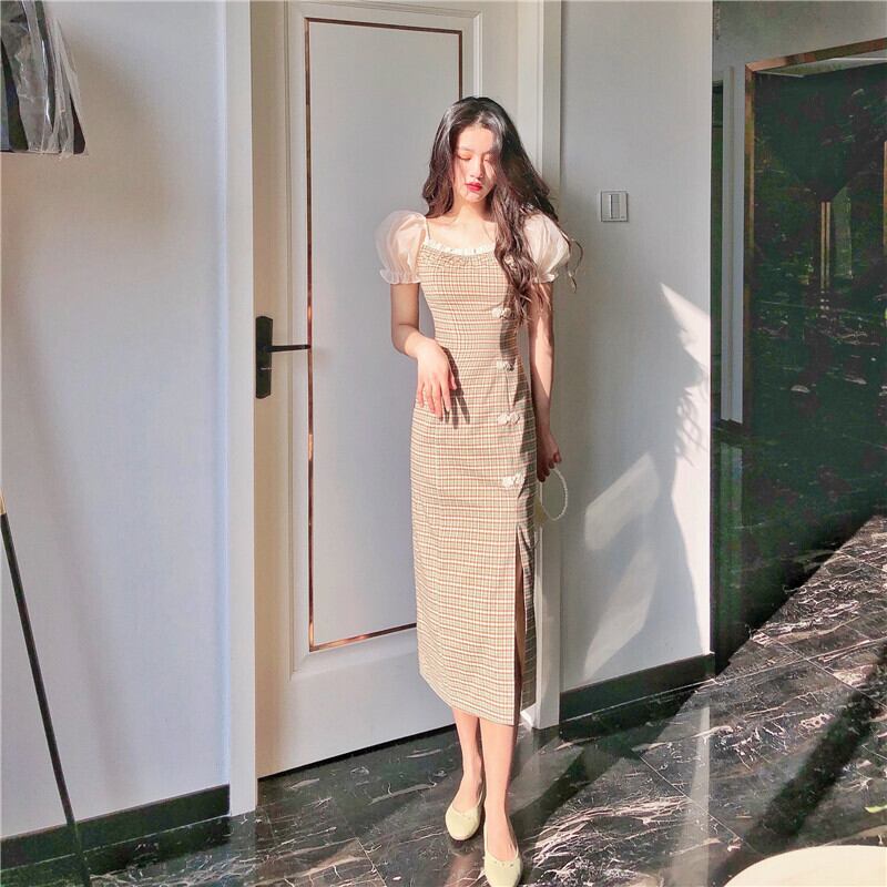 フランスのレトロな優しい風パフスリーブチャイナドレスの改良版女性XiaYujieライトクックスタイルスプリットミドルスカート yingd70621458772